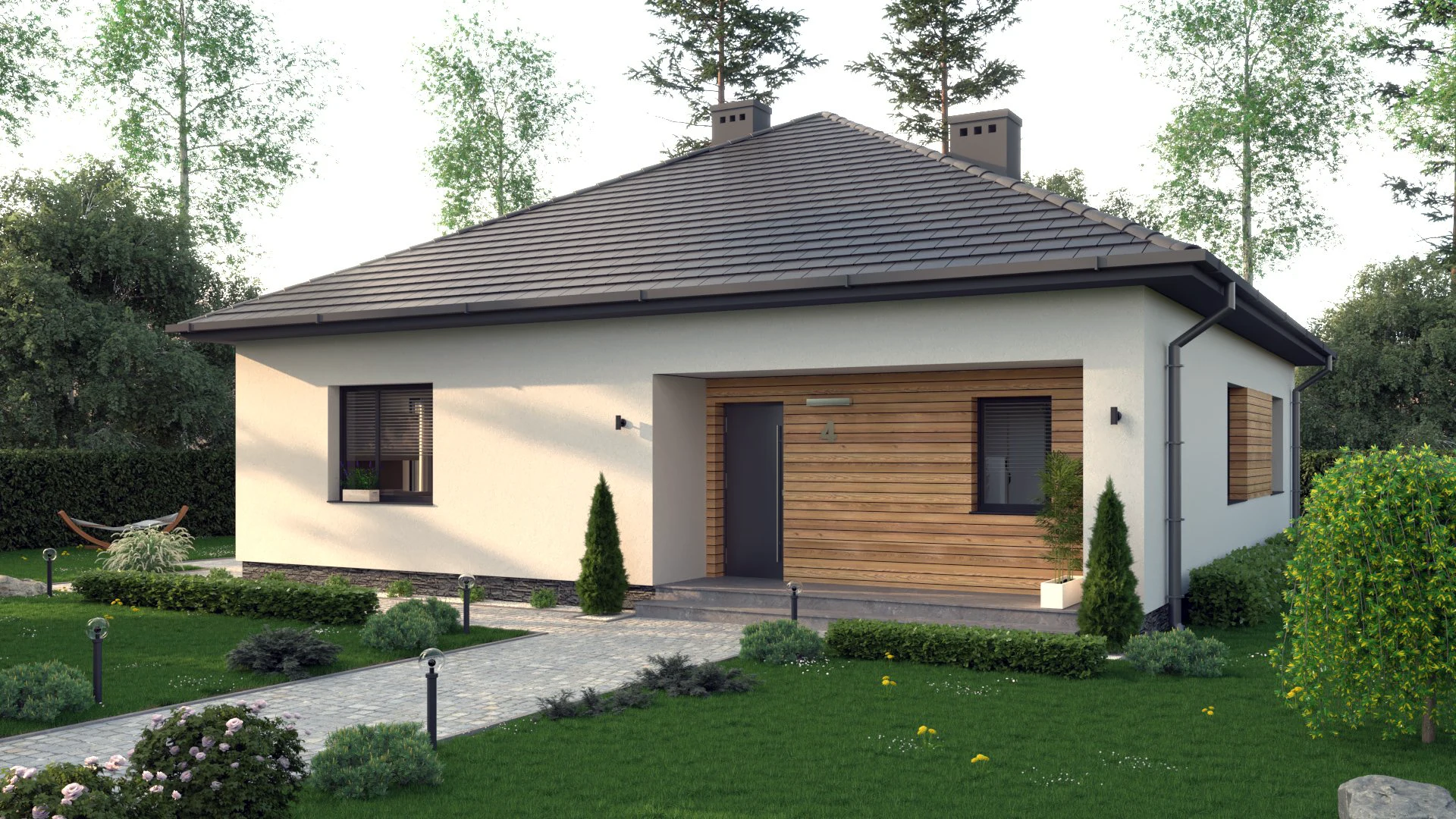 Nowoczesny dom jednorodzinny zaprojektowany z myślą o komforcie i luksusie. Ten ekskluzywny projekt łączy elegancki design z funkcjonalnością, zapewniając doskonałe warunki do życia.